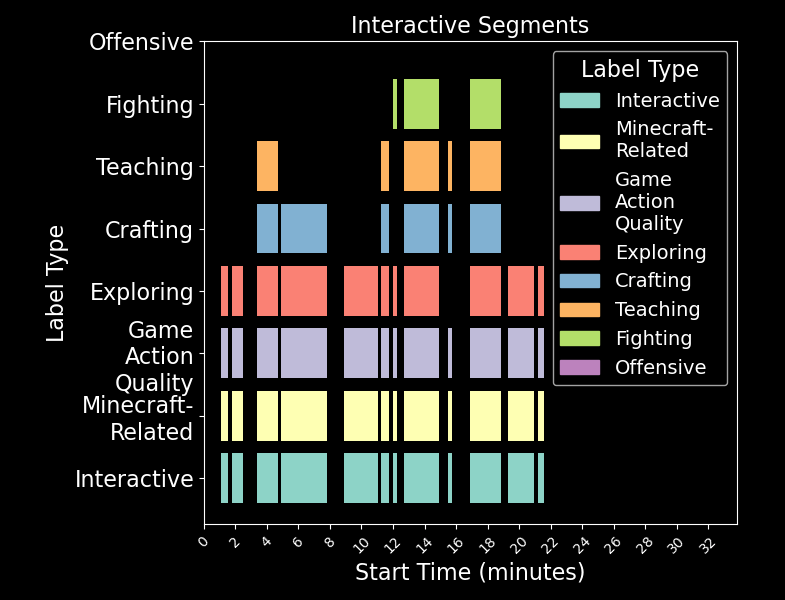 The figure above shows a recorded session, with segments classified into binary categories based on the player’s in-game activity.